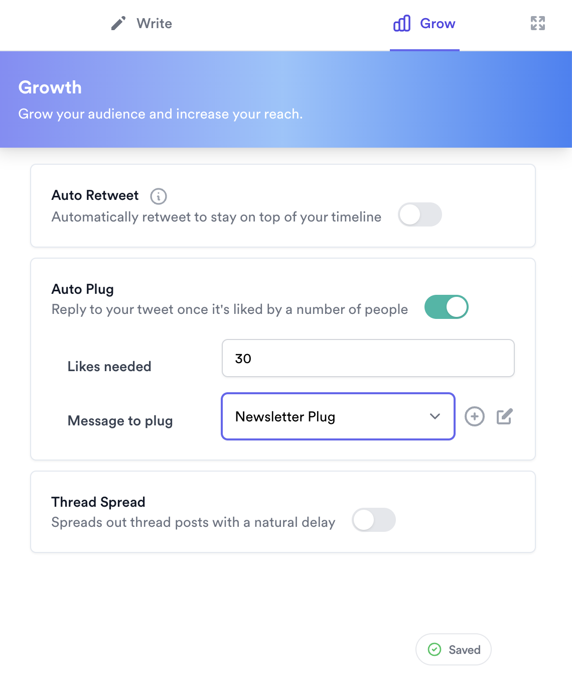 Note: When you manually set a growth setting from the Writer for an individual post, this will take priority over the Global Setting - this ensures you have full control over everything!